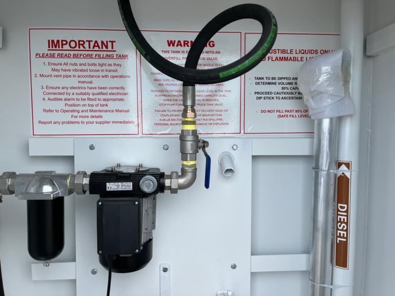 Unused 5000L Slimline Self Bunded Fuel Tank,Model: FS5 comes with Pump. Safe Fill: 5000Litres, Fork Pockets, Tank is constructed to AS1692-2006 & AS1940-2017, Shipping Dimensions: 2950mm L x 1140mm W x 2520mm H. Empty Weight: 1850ks. Serial No: FS525041502 Location: Toowoomba, QLD