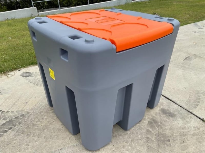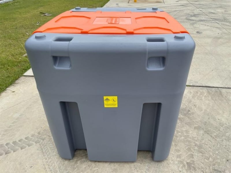 Unused 980 Litre Fuel Cube / Tank, Model: DD980, Comes with: 12V Pump - 56 l/m Flow, 10m hose /hose Reel with automatic shut off Nozzle, Lockable lid, Fork Pockets, Approximate Shipping Dimensions: 1140mm L x 1280mm W x 1110mm H, Approximate Weight: 128kg, Location: Toowoomba, QLD