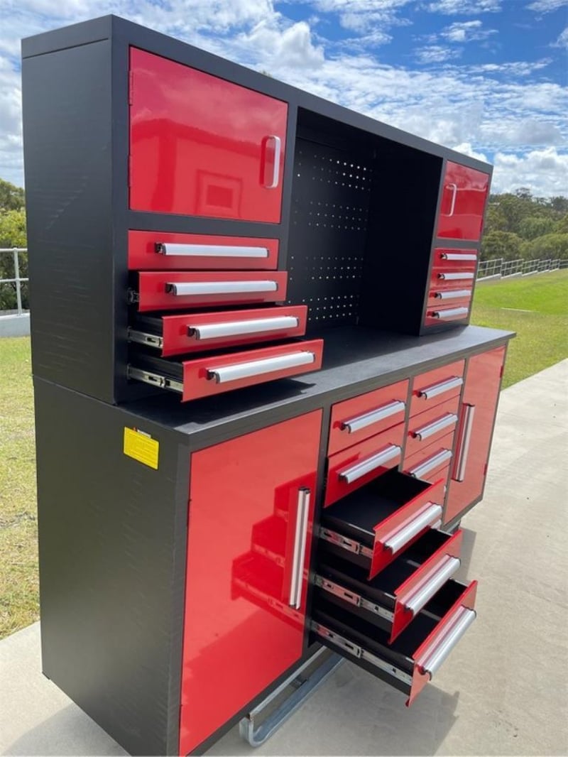Unused 18 Drawer Work Bench / Tool Cabinet, Model: 7ft-18D, 3-part sliding drawer system, Shipping Dimensions: L 2200mm x W 580mm x H 1690mm, Weight: 260Kgs Location: Toowoomba, QLD