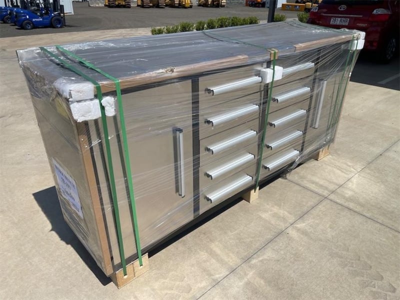 Unused 10 Drawer Stainless Steel Work Bench, Model: 7ft10D-SS, 3 Part Sliding Drawer System, Approximate Shipping Dimensions: 2230mm L x 600mm W x 1100mm H, Approximate Weight: 186kg Location: Toowoomba, QLD
