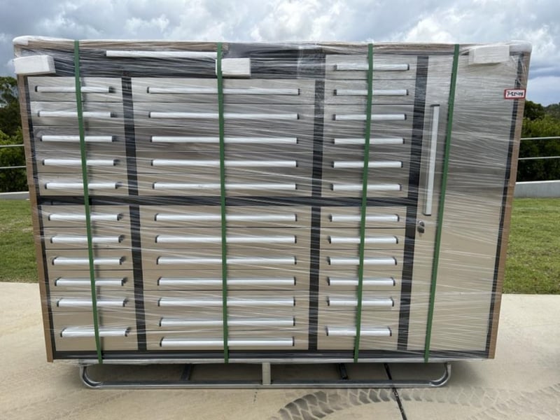 Unused 35 Drawer Stainless Steel Tool Storage Chest, Model: 7ft-35D, 35 Drawers, 3 Part Sliding Drawer System, Lockable Drawers – Various Sizes, Approximate Shipping Dimensions: L 2200mm x W 580mm x H 1600mm, Weight: 318Kg Location: Toowoomba, QLD