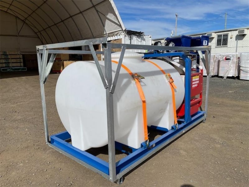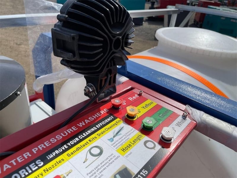 Unused Heated Pressure Washer / Water Blaster with Tank, 3600PSI, Key Start, Diesel Fired Burner, Various Spray Nozzles, Lance / Gurney, Skid Mounted with Fork Pockets, Heavy Duty Steel Frame, Work Lights, Approximate Shipping Dimensions: 2220mm L x 1240mm H x 1140mm W, Approximate Weight: 350kg Location: Toowoomba, QLD