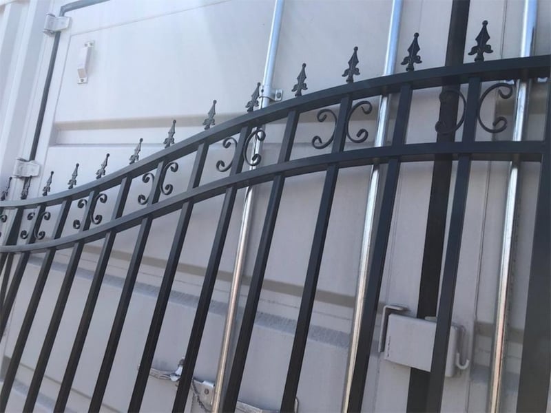 Set of 2 x 8ft Unused Wrought Iron Style Gates, Each gate is 8ft wide, Height at High Side: 2.3m, Height at Low Side: 1.8m, Made from Galvanised Steel, Approximate Combined Weight of both gates: 135kg Location: Toowoomba, QLD