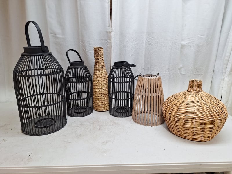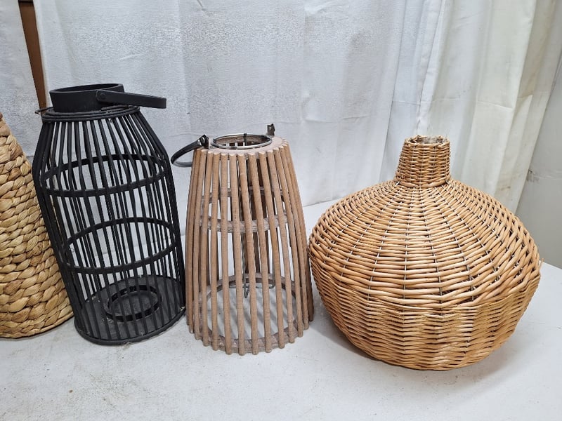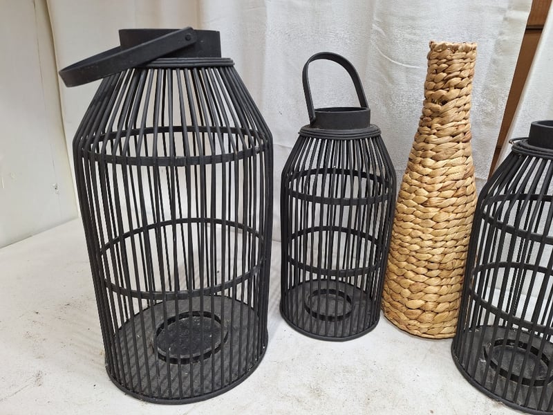 Assorted Decorative Lanterns, Rattan Style, Black & Natural FinishSOLD AS LOT