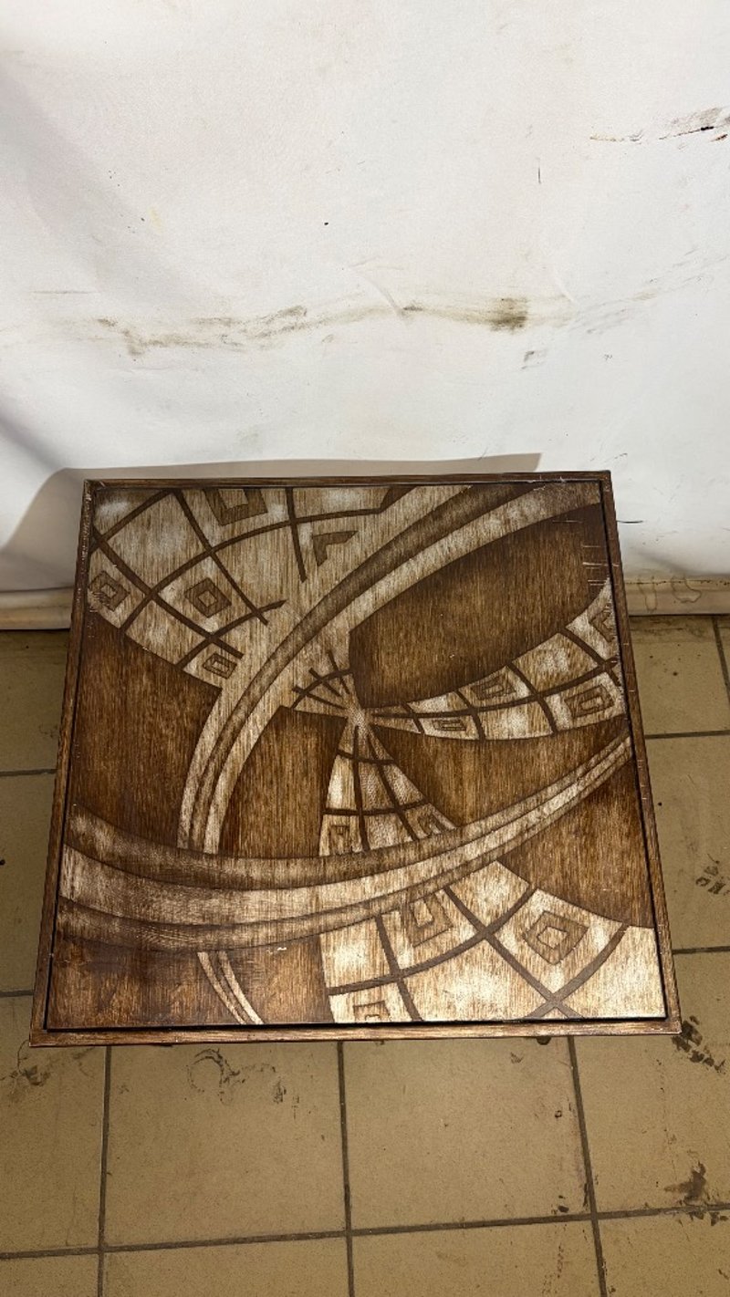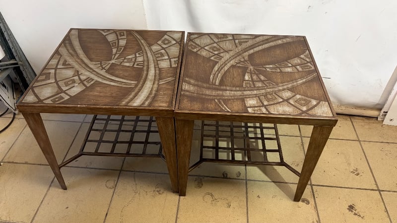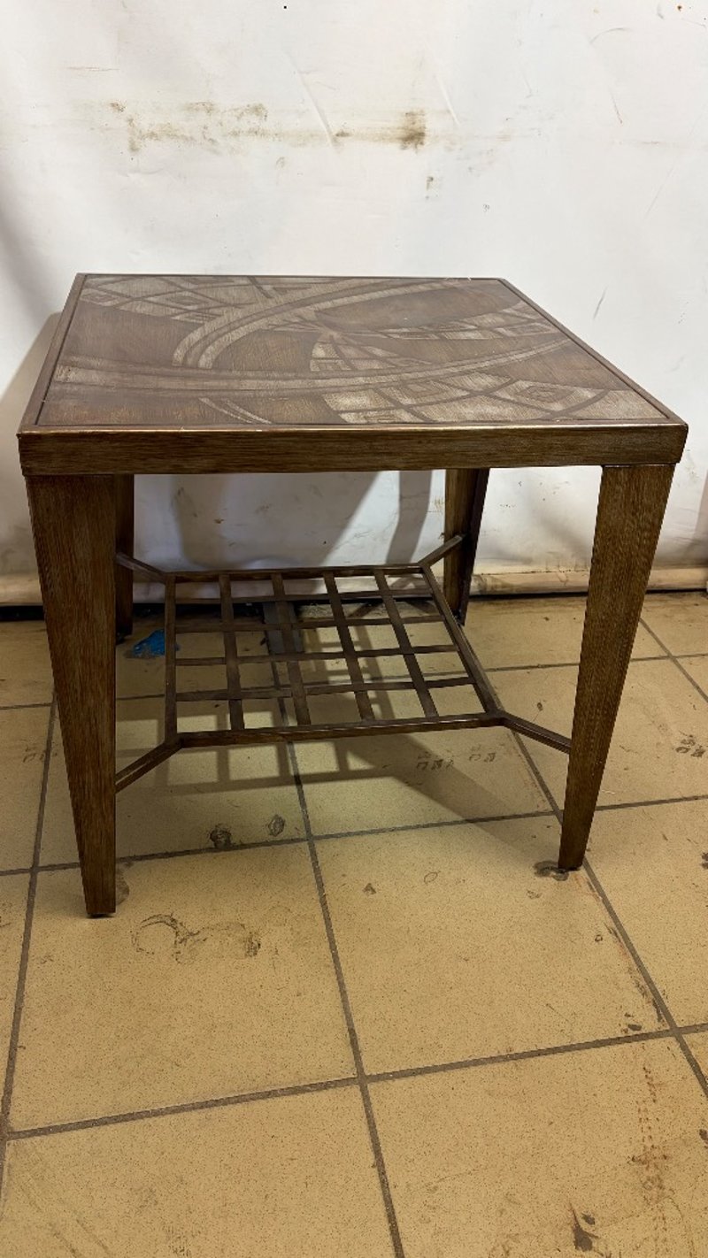 Table, grey and brown finish, metal.Dimensions: H 54.5cm, W 56cm, D 56cm.BID PER EACH, MUST TAKE TWO.