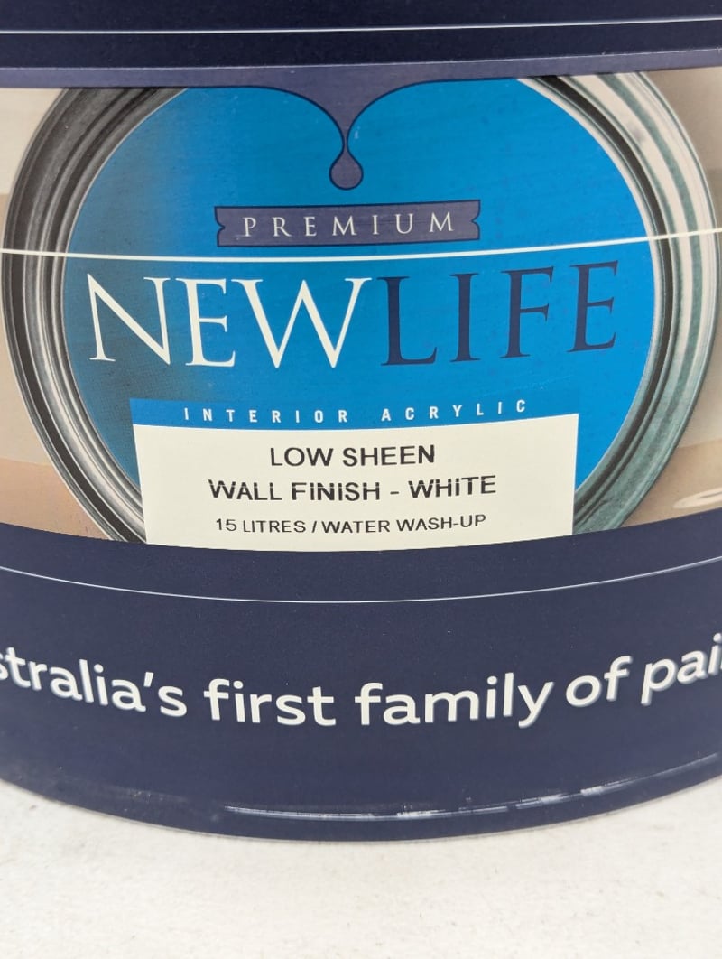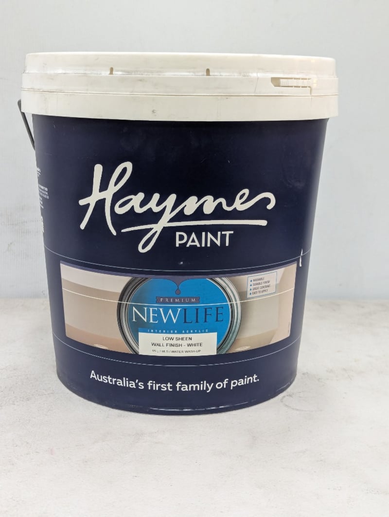 Paint, Haymes, Premium New Life, Low Sheen, Wall Finish, White, 15 litres BID PER LITRE, MUST TAKE 15 LITRES
