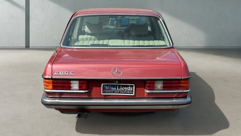 Year: 1977 | Make/Model: Mercedes-Benz 280E | Body: 4-Door Saloon | Engine: 2.8-litre inline-6 petrol | Transmission: Automatic | Drive: RWD | Odometer: 358,060 km | Colour: Red | Seats: 5 | Chassis: 12303322019799