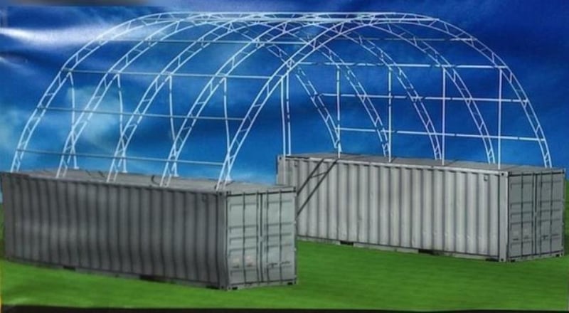 Unused Heavy Duty 60ft x 40ft Container Shelter, Model C604020S, 60ft Wide x 40ft Long x 20ft high, Double trussed frame & tarp, Heavy duty PVC fabric, galvanised tube frame, Approximate Shipping dimensions: 3320mm L x 1130mm W x 1650mm H, Approximate Weight: 1760kg Location: Ipswich, QLD