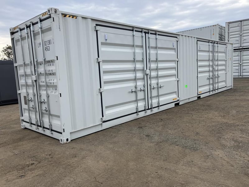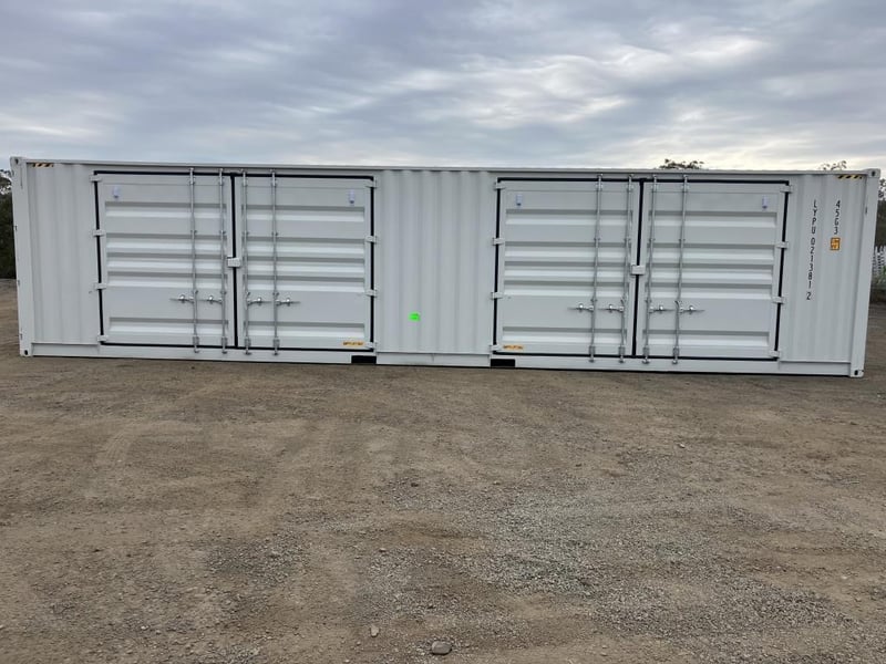 Unused 40ft High Cube 2 Door Side Opening Container, With Forks Pockets, 2 Large side doors on one side, Doors Dimensions: Approximately 4m Wide x 2.5m High, Container no: LYPU0220663, Date of manufacture: 09/2025, TARE: 4370 Kgs, comes with CSC plate, next maintenance inspection due: 09/2030, Location: Ipswich, QLD