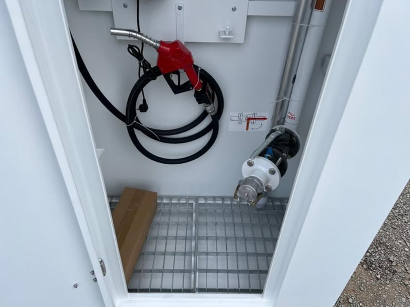 Unused 5000L Slimline Self Bunded Fuel Tank,Model: FS5 comes with Pump. Safe Fill: 5000Litres, Fork Pockets, Tank is constructed to AS1692-2006 & AS1940-2017, Shipping Dimensions: 2950mm L x 1140mm W x 2520mm H. Empty Weight: 1850ks. Serial No: FS525041502 Location: Ipswich, QLD