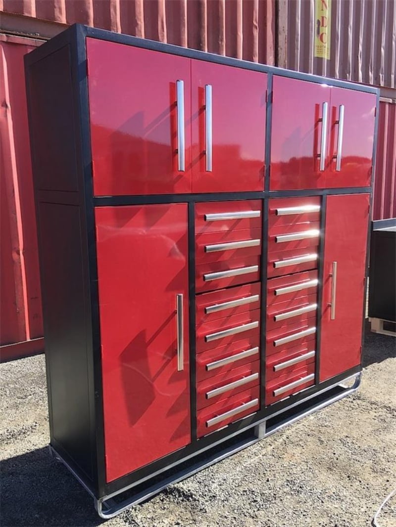 Unused Workshop storage cabinet, with 16 Drawers, 4 large storage Compartments, 50Kgs capacity per drawer, Approximate Shipping Dimensions: 2200mm L x 630mm W x 2050mm H, Approximate Weight: 300kg Location: Ipswich, QLD