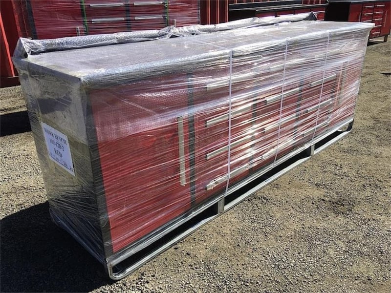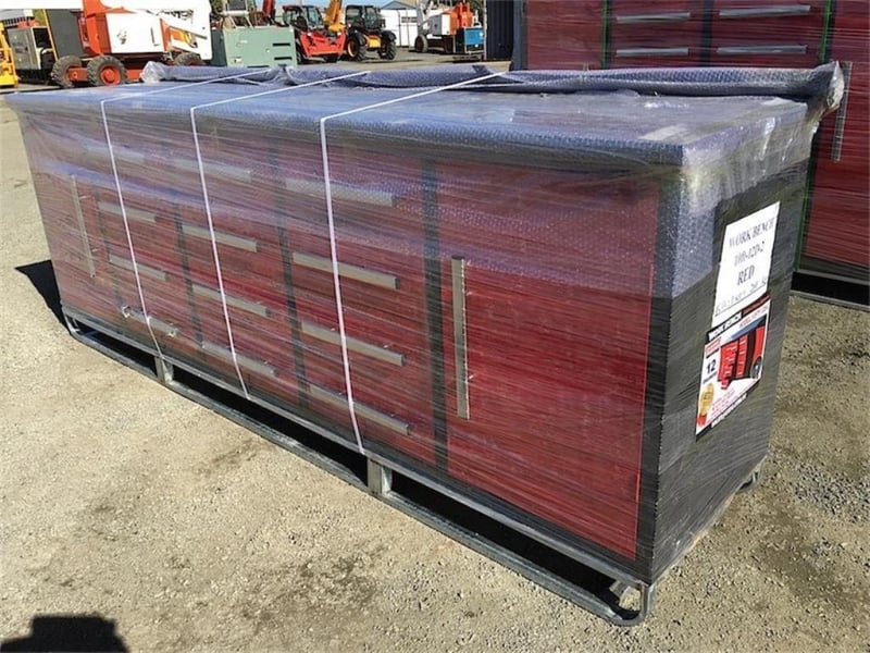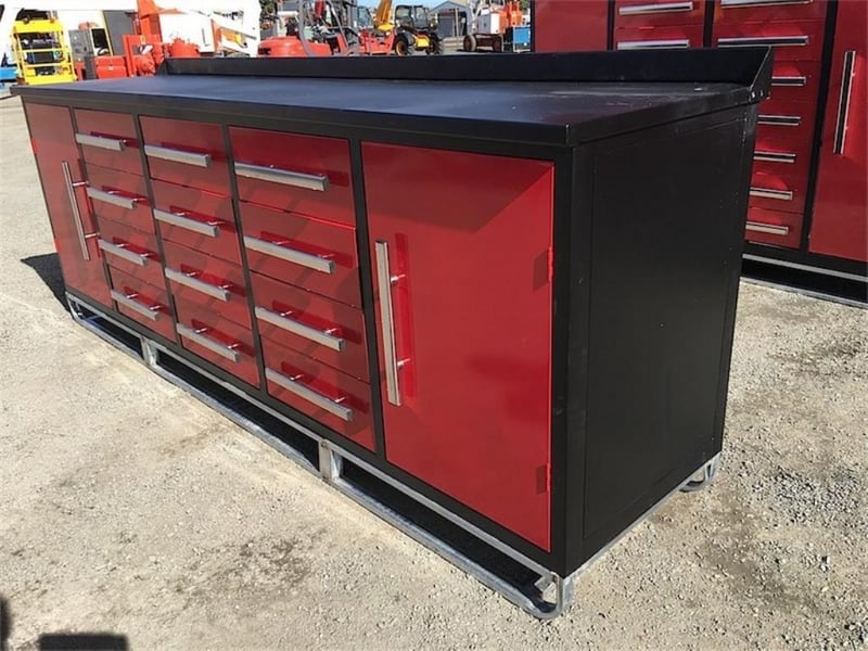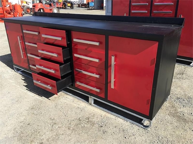 Unused Large Work bench, with 12 drawers & 2 large storage cabinets, 50kgs Capacity per drawer, Approximate Shipping Dimensions: 2870mm L x 670mm W x 1000mm H, Approximate Weight: 300kg Location: Ipswich, QLD