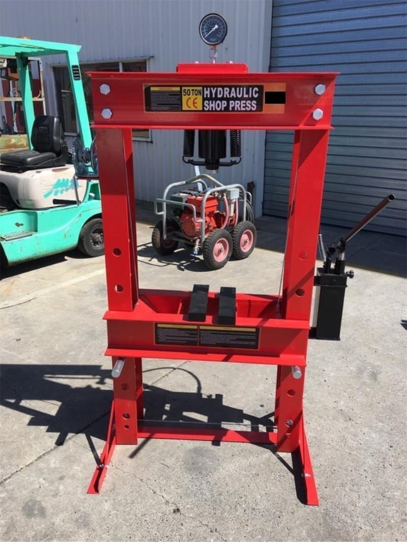 Unused 50 Ton Hydraulic Workshop Press, 2 speed pump, some assembly required, Approximate Shipping Dimensions: 1880mm L x 910mm W x 340mm H, Approximate Weight: 240kg Location: Ipswich, QLD