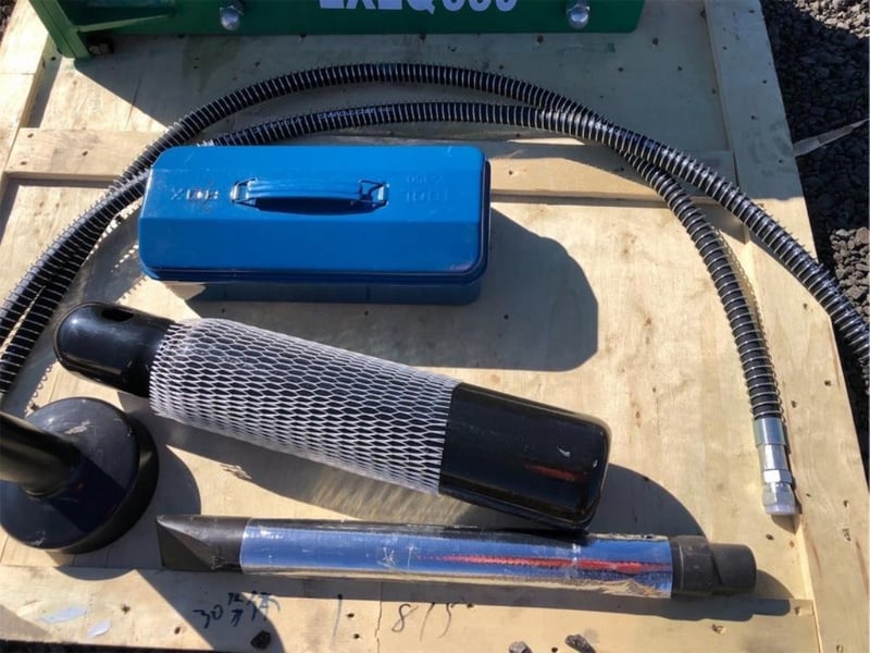 Unused Hydraulic Skid Steer / Excavator Post Driver, Model: EXEQ530P, To Suit both Skid Steers and/or 2.5-4 Ton Excavators, Side mount for Skid Steers / Top Mount for Excavators, Can be used as both Post Driver & Rock Breaker, Operating Pressure: 90-120 bar, Hydraulic Flow: 25-50 Litres per minute, Frequency - 600-1000 bpm, Comes with 1 x Post Driver & 2 x Chisels, Each unit comes with a separate heavy duty mounting plate for skid steers, To be attached by buyer, Approximate plate dimensions 1180mm x 480mm, Weight: 180kg, Location: Dubbo, NSW