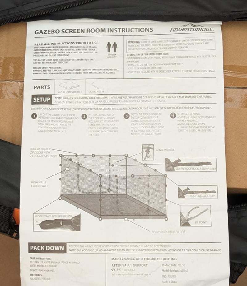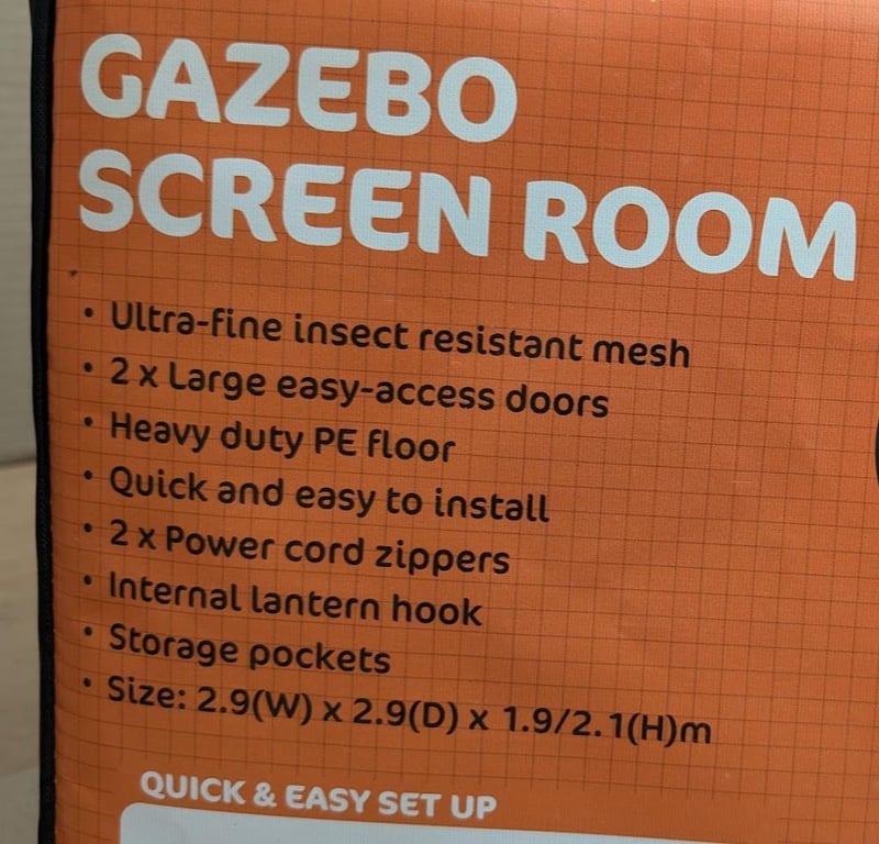 Adventuridge Gazebo screen room 2.9X2.9X2.1m new to box in carry bag