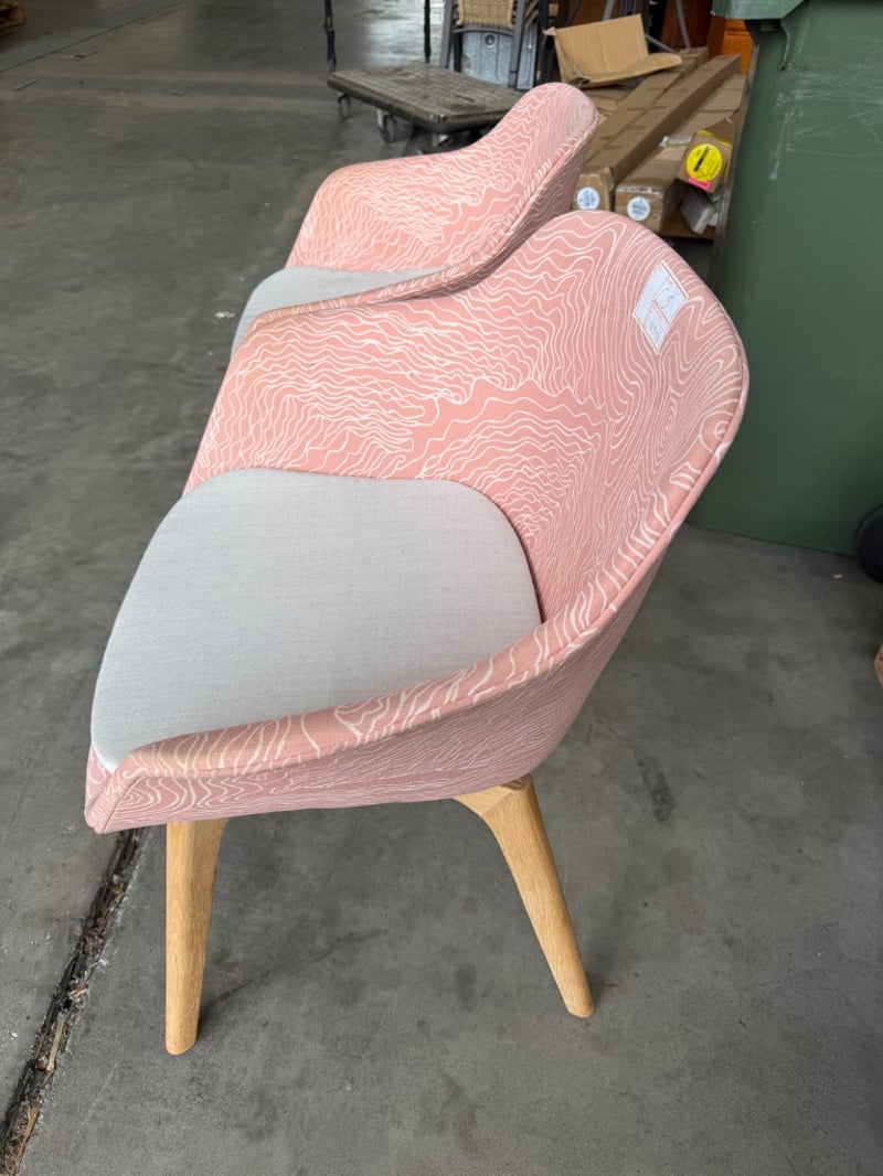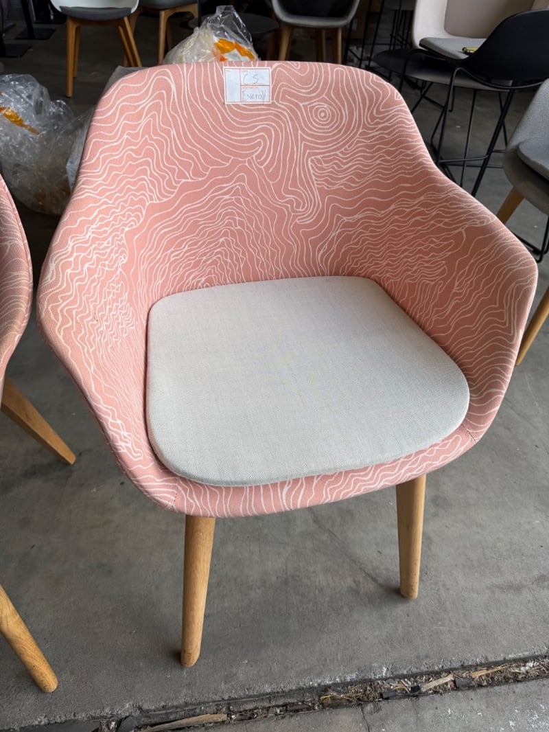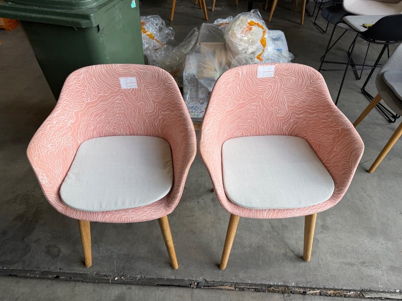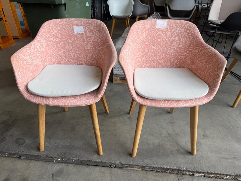 Pair Of Chairs, Timber & Fabric Style, Pink Finish SOLD AS LOT