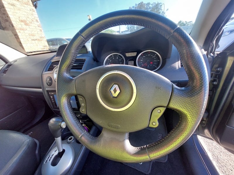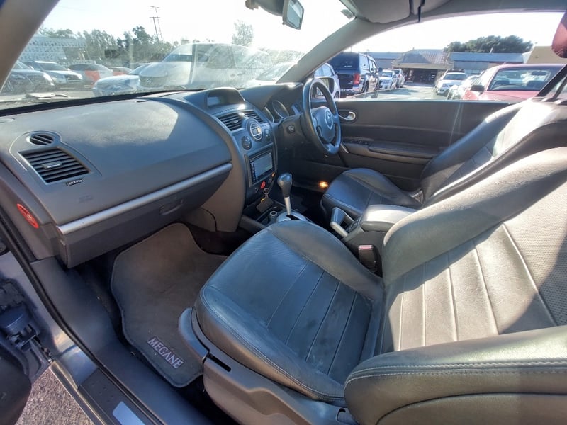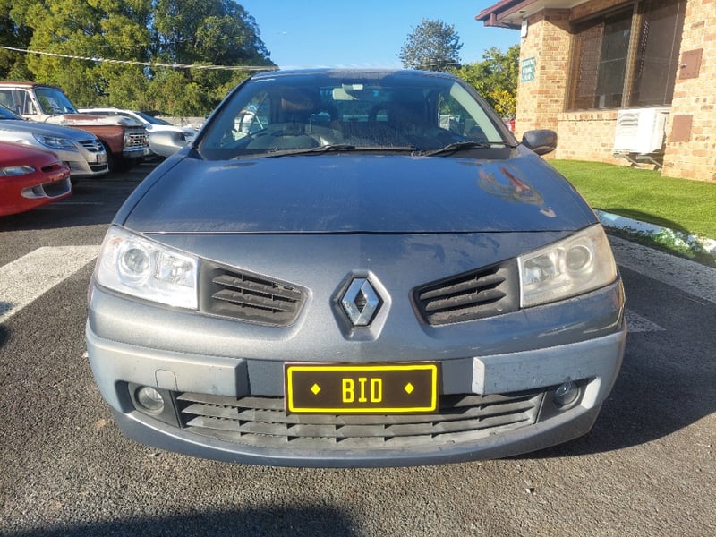 2007 Renault Megane II Year: 2007Make: RenaultModel: MeganeSeries: IIBody: 2-Door CoupeDrive Type: Front wheel driveOdometer: Indicating 179,982 Engine: 1.6 I PetrolTransmission: 4-Speed AutomaticColour: Blue MetallicDescription/extras: 2006 Renault Megane II coupe presented in blue metallic with 179,982 kilometres on the odometer. This front-wheel-drive compact coupe features a 1.6-litre inline four-cylinder petrol engine paired with a four-speed automatic transmission. Right-hand drive configuration suitable for Australian driving conditions. The vehicle displays black and white sports upholstery with dual front air bags and manual climate control. Alpine audio system with touchscreen interface. Original owners' manuals and service logbook documenting maintenance history included. Fitted with original 16-inch alloy wheels and Michelin tyres. Dashboard and centre console in good condition with functional climate control and audio system. Vehicle has been maintained throughout its service life with records available. Engine bay undertrays show minor wear, lower front bumper has minor surface scratches, bonnet and boot lids show minor edge scuffs, slight scuffing to alloy wheel rims, interior trim shows light usage marks, steering wheel , rear left window stuck in open/down position, leather shows minor wear on palm area.. Inspection recommended. VIN: VF1EM1N0A60641713ENG No: F4RC771C073507(Key #B13 Carrara x2 keys)Lloyds stock #657459+1#PCV