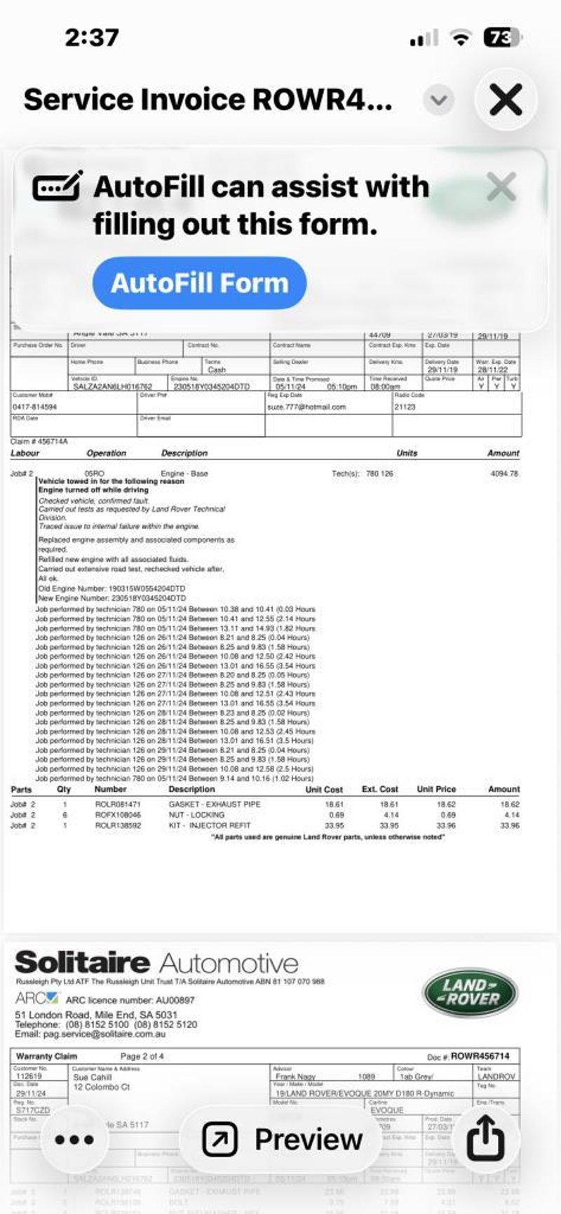 Custodian advises genuine engine replacement by Range Rover approximately 8000kms ago reciept of works complete refer to images. 2 x Keys & Books.