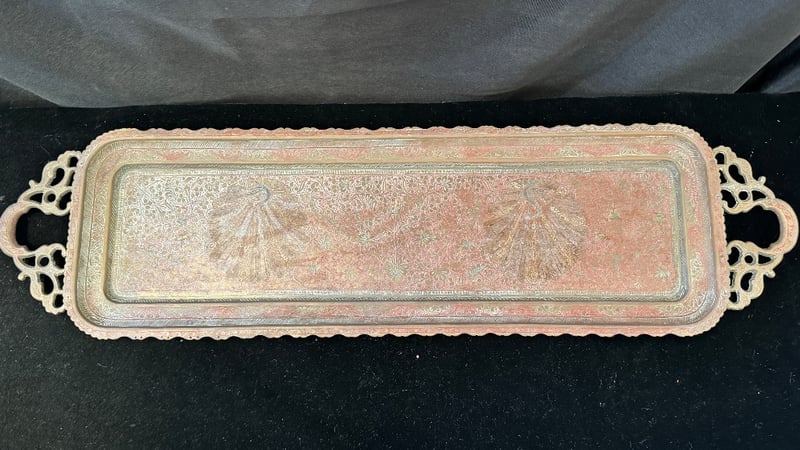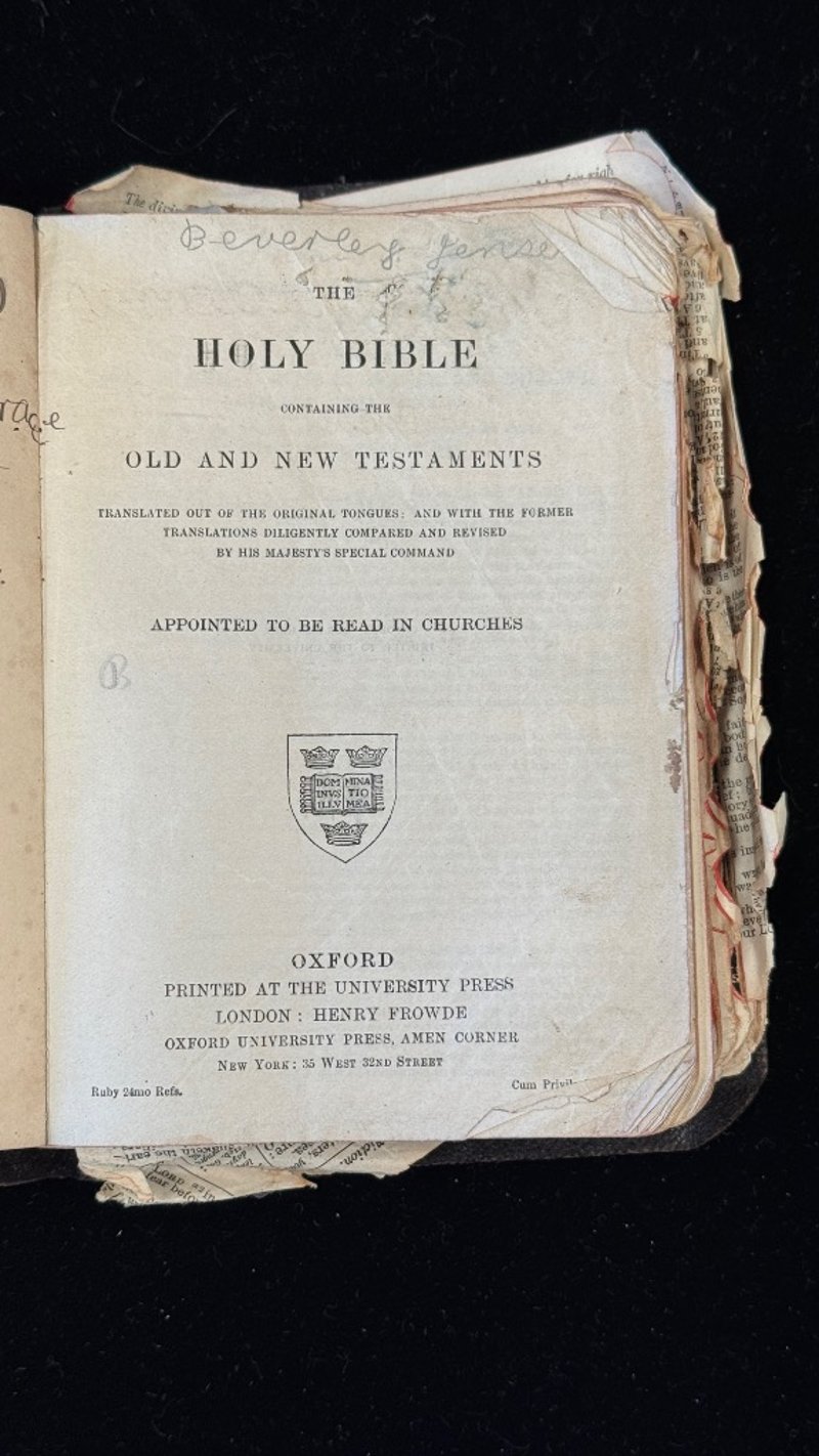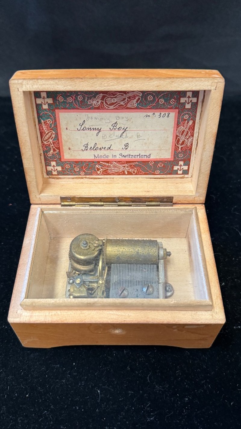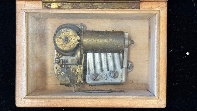 COLLECTION OF TRINKETS Curated Collection Comprising Ornate Brass Serving Trays With Pierced Handles And Patinated Surfaces; Swiss-Made Music Boxes (Thorens And Reuge Mechanisms) In Wooden Cases With Decorative Inlay; Hand-Coloured Architectural Engraving Depicting A Gothic Cathedral Street Scene, Signed And Framed; Two Antique Leather-Bound Bibles Including A Bagster'S Polyglot Edition (Samuel Bagster & Sons, London) And Oxford University Press Edition; Vintage Hardcover Book With Gilt Lettering; All Items Displaying Condition: Fair - Refer To Images 584443+7