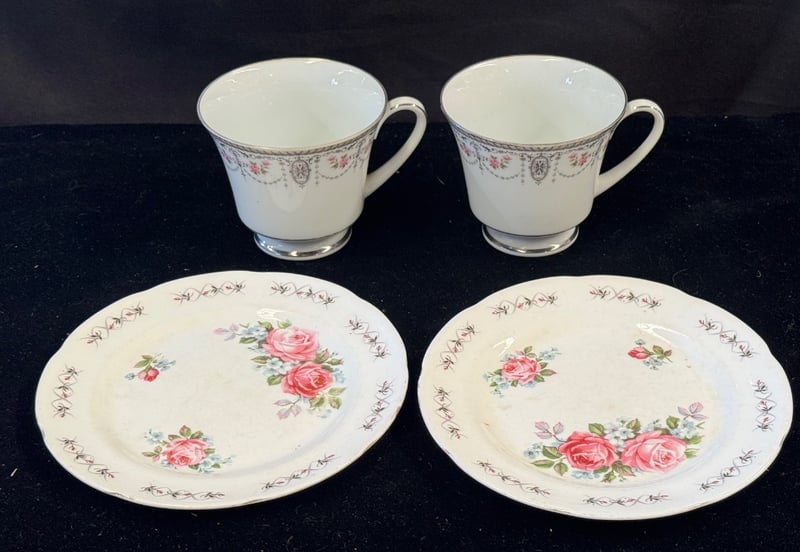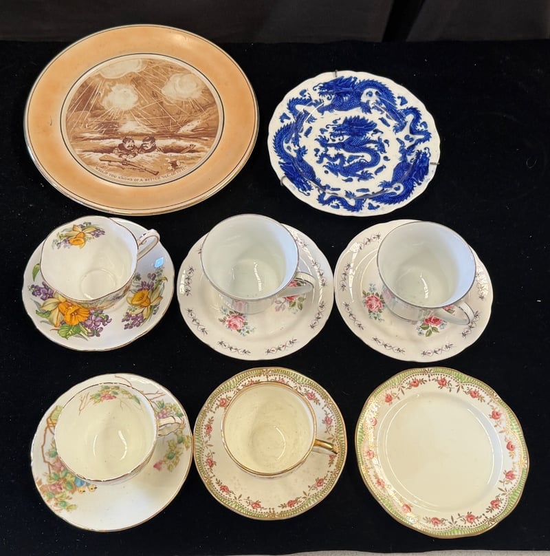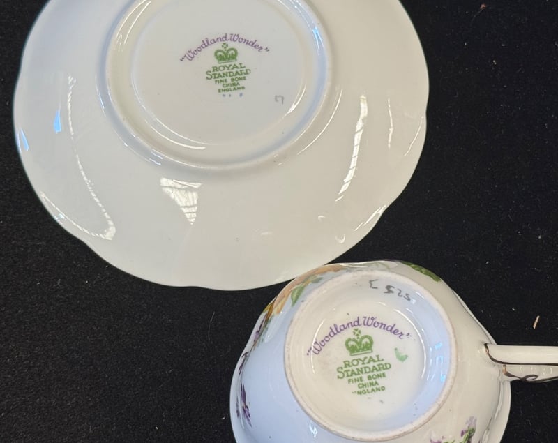 COLLECTION OF ENGLISH AND CONTINENTAL PORCELAIN TEACUPS, SAUCERS, AND DECORATIVE PLATES Comprehensive Collection Comprising Approximately 12 Pieces Of Fine Bone China And Porcelain Tableware Spanning Late 19Th To Mid-20Th Century Manufacture. Includes Royal Standard "Woodland Wonder" Teacup And Saucer Set With Delicate Floral Motifs In Yellow And Purple; Noritake "Clarice" Japanese Porcelain Teacup With Pink Rose Decoration; Adderley English Bone China "Rosita" Pattern Featuring Pink Roses; Multiple Hand-Painted Teacups With Botanical Designs In Yellow, Pink, And Purple Florals; Bl Condition: Good - Refer To Images 584443+9