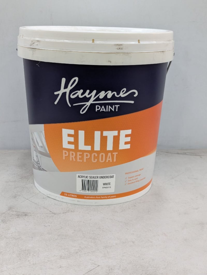 Paint, Haymes, Elite Prepcoat, Acrylic Sealer Undercoat, White, 15 litres