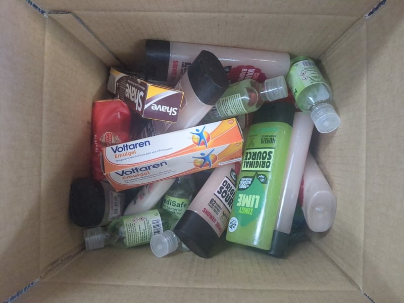 Boxes Of Assorted Bathroom Soaps, Shampoos And Lotions
