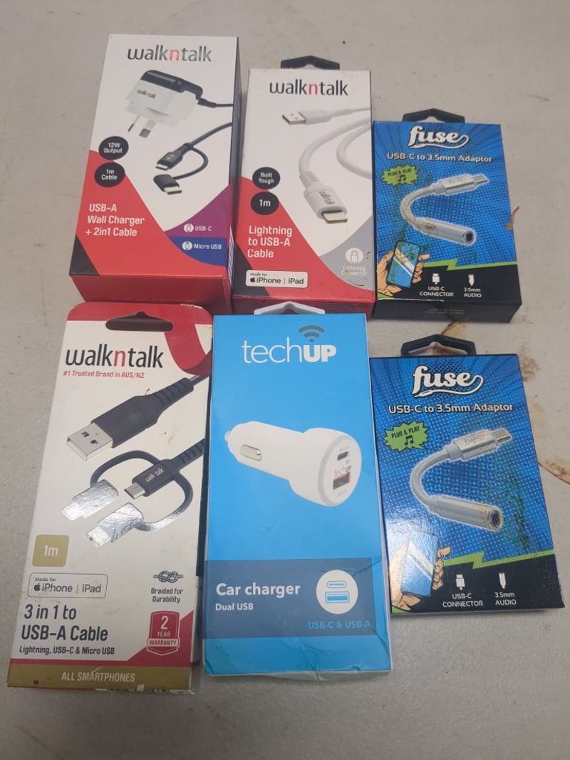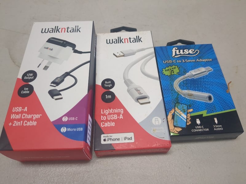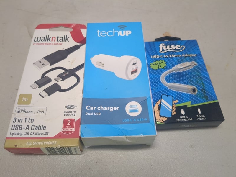 Assorted Phone Accessories Including Dual USB Car Charger, 3 In 1 To USB-A Cable And More. Sold As Lot