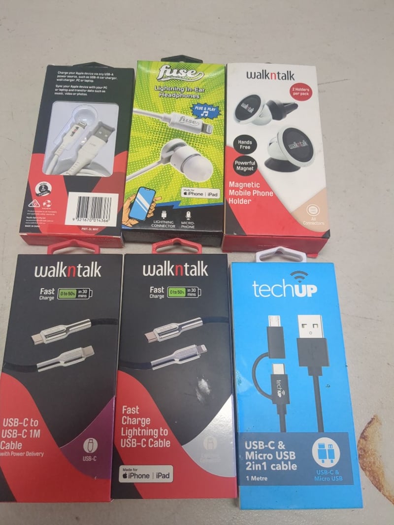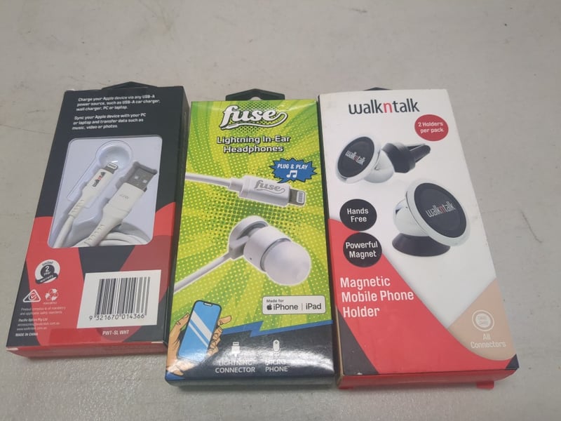 Assorted Phone Accessories Including Magnetic Mobile Phone Holder, Fast Charge Lightening to USB - C Cable And More.