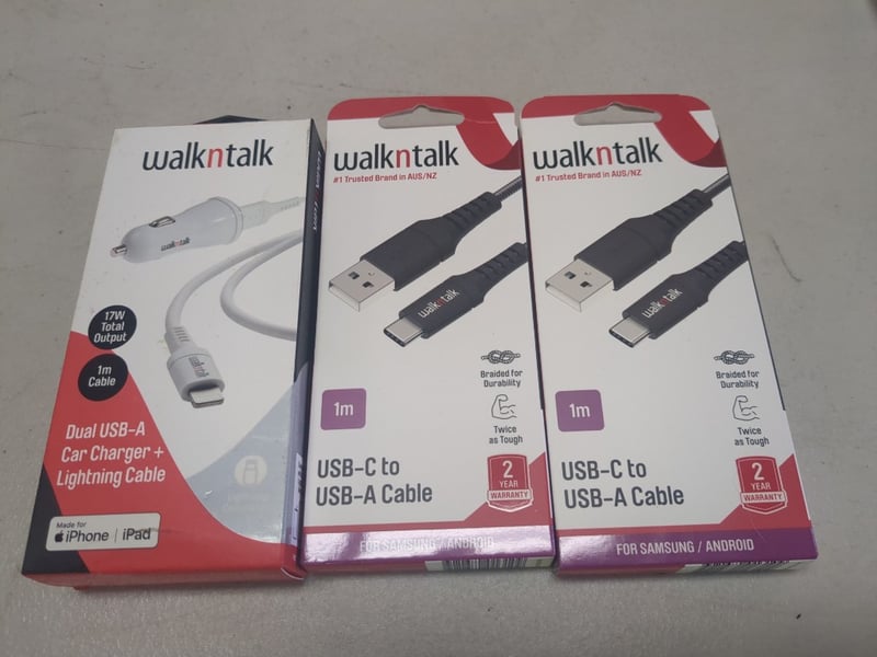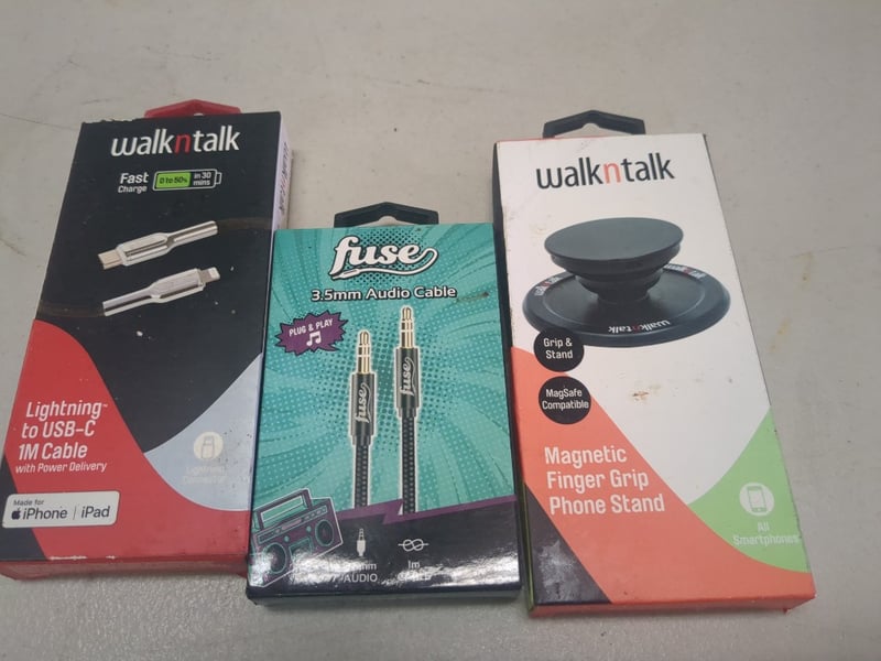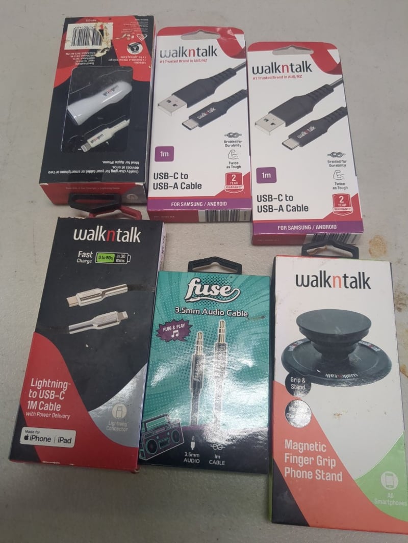 Assorted Phone Accessories Including USB C To USB A Cable, Lightening to USB C 1M Cable And More. Sold As Lot