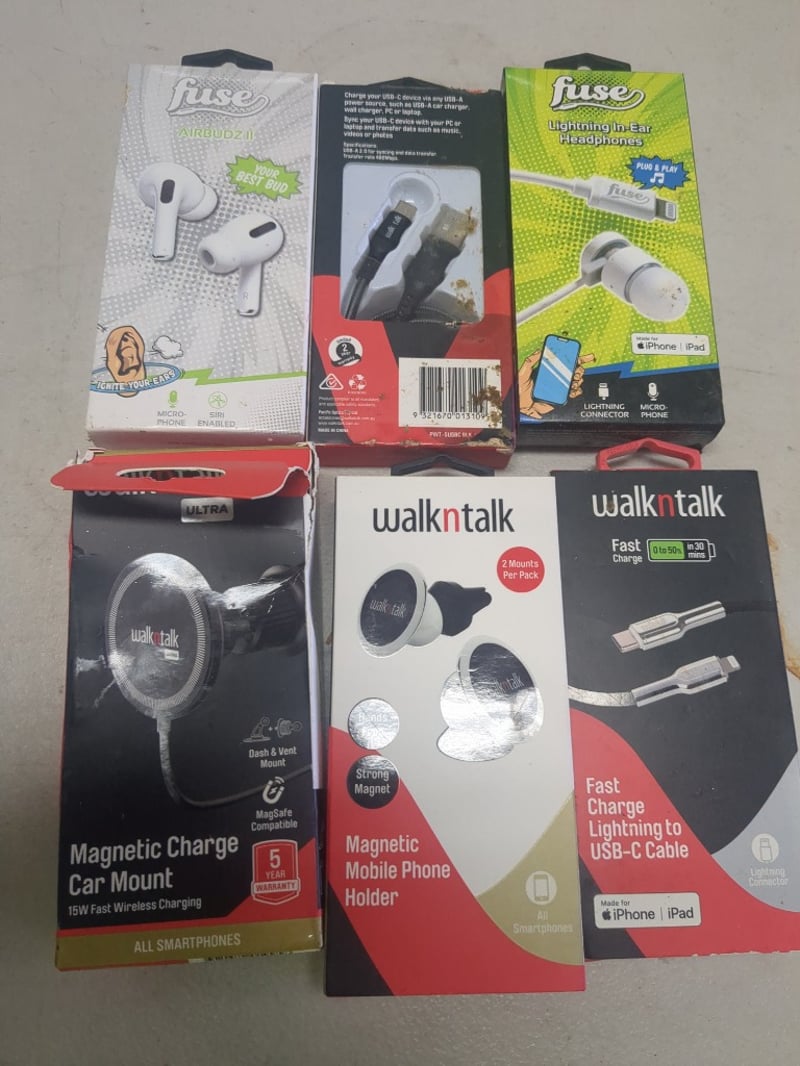 Assorted Phone Accessories Including Fuse Airbudz 2, Magnetic Phone Mount And More. Sold As Lot