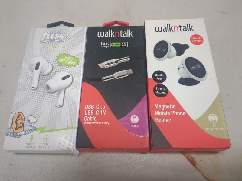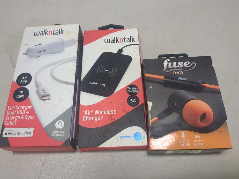 Assorted Phone Accessories Including Air Wireless Charger, Fuse Airbudz 2 And More. Sold As Lot