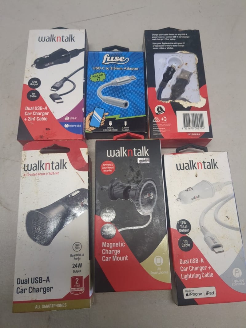 Assorted Phone Accessories Including Dual USB A Charger, Magnetic Car Mount And More.