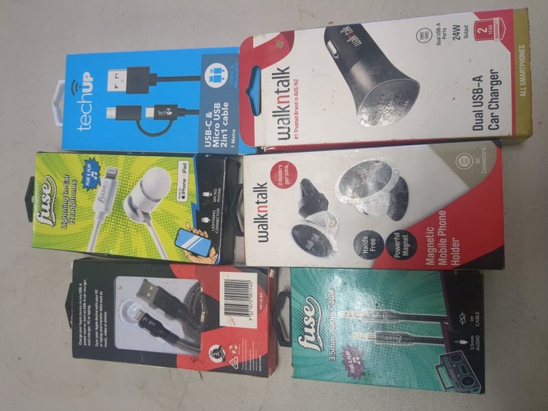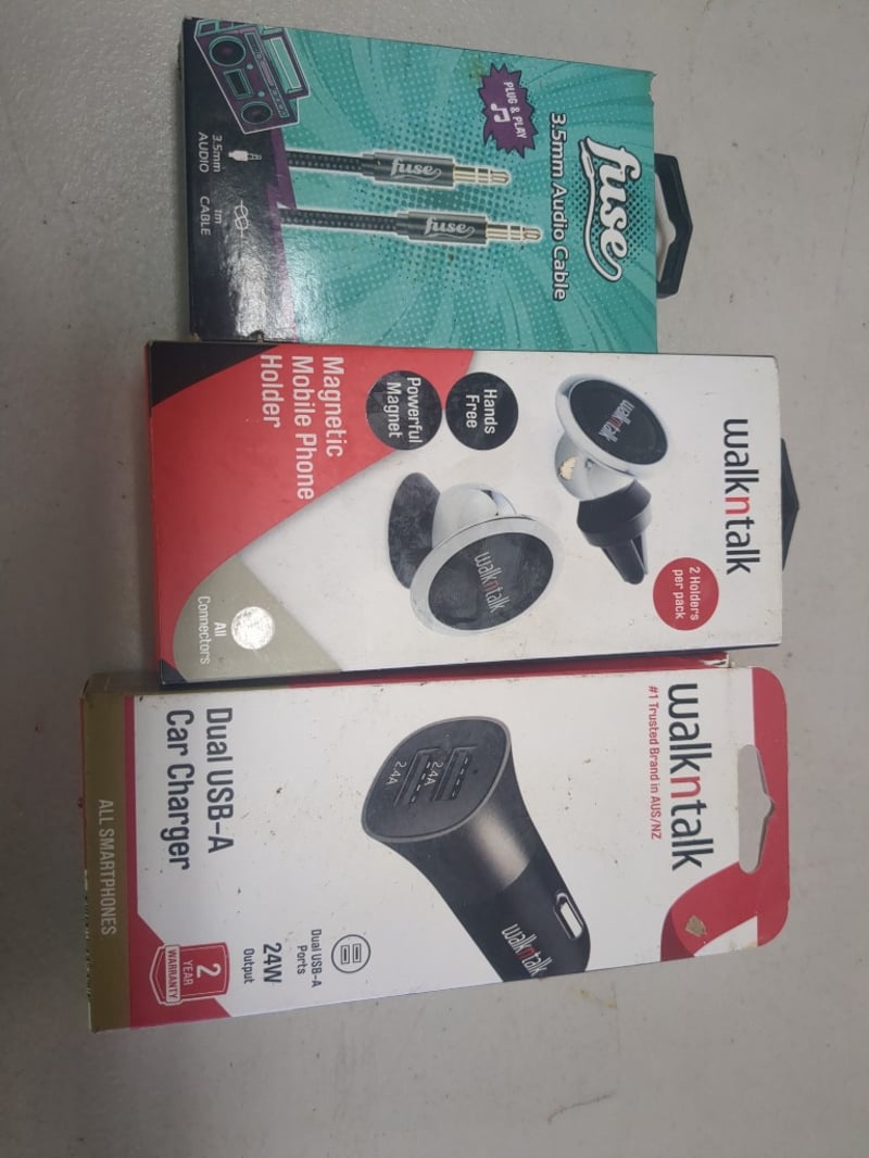 Assorted Phone Accessories Including Magnetic Mobile Phone Holder, Dual USB A Car Charger And More.
