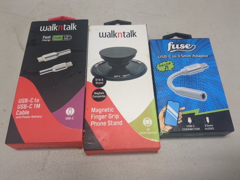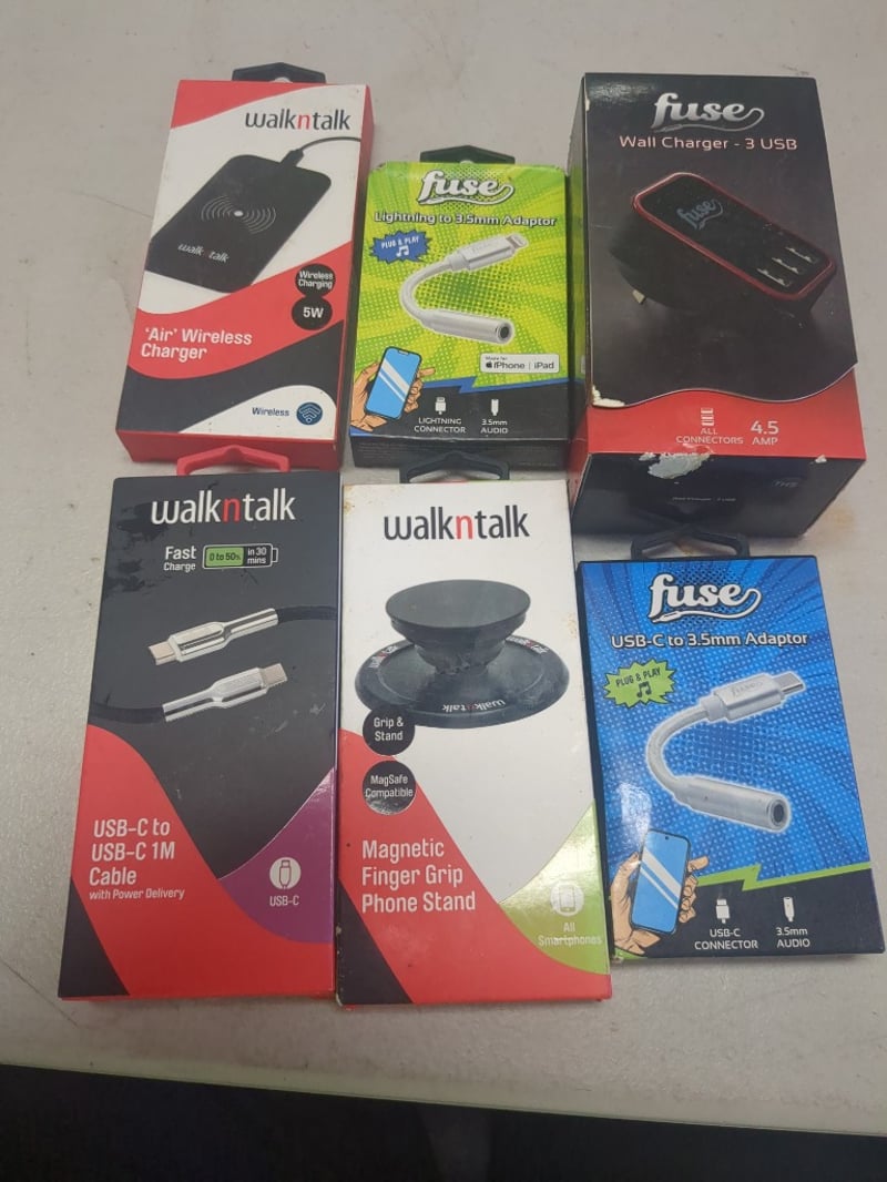 Assorted Phone Accessories Including Magnetic Finger Grip Phone Stand, 'Air' Wireless Charger And More. Sold As Lot