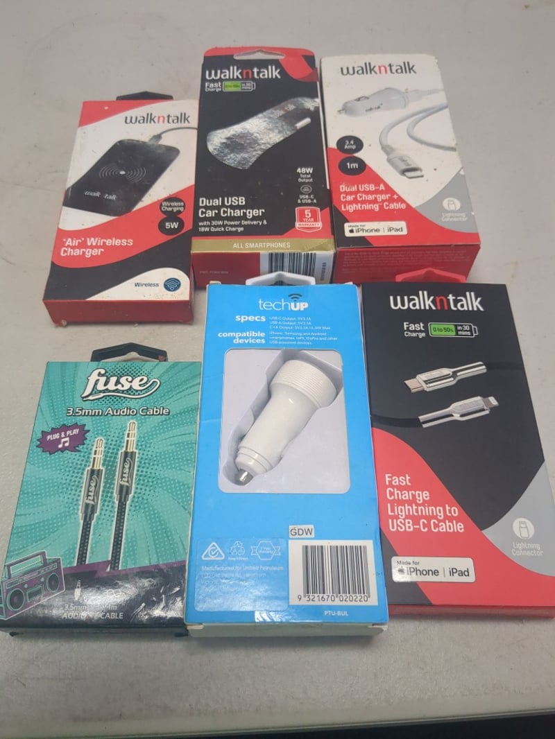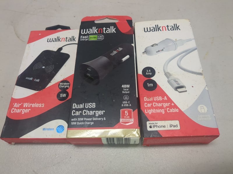 Assorted Phone Accessories Including ''Air Wireless Charger, Dual USB Car Charger And More. Sold As Lot