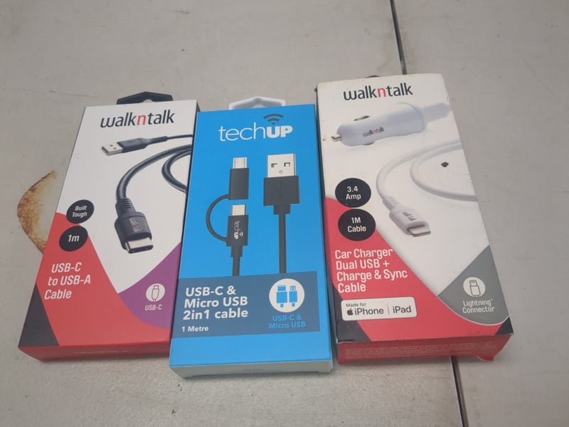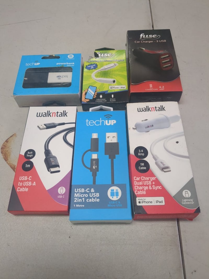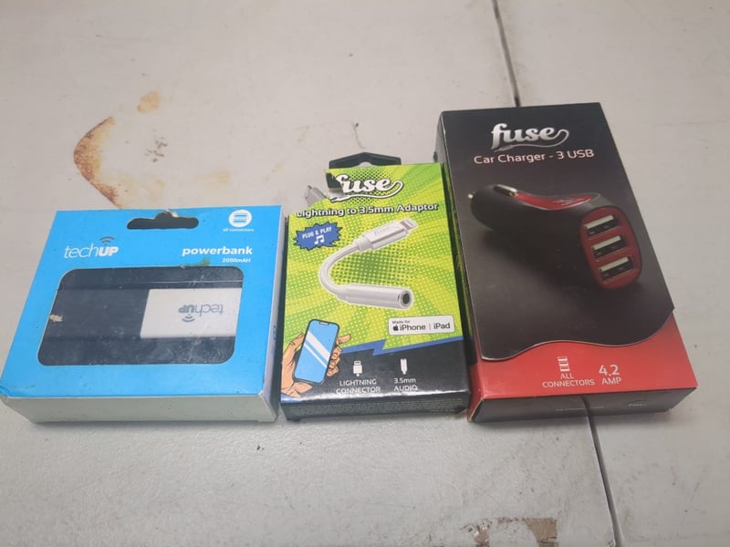 Assorted Phone Accessories Including Car Charger - 3 USB, Tech Up PowerBank And More.