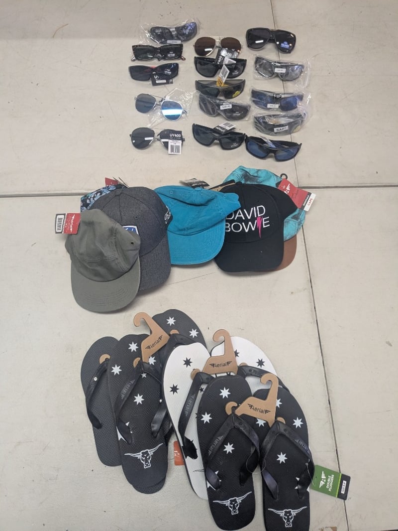 Assorted Thongs sizes 7 - 11, Caps And Sunglasses