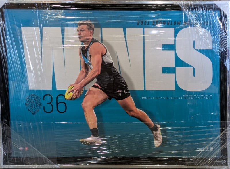 2021 LIMITED EDITION OLLIE WINES PORT ADELAIDE FOOTBALL CLUB BROWNLOW MEDAL FRAMED PRINT