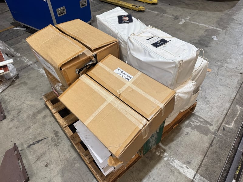 Assorted lot of goods including exit signs, 3d glasse, rope and more