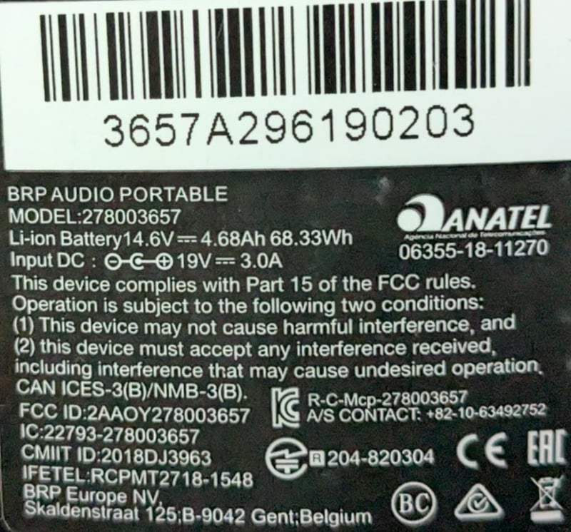 Sea-Doo BRP Portable Bluetooth Speaker with replacement 15V power adapter