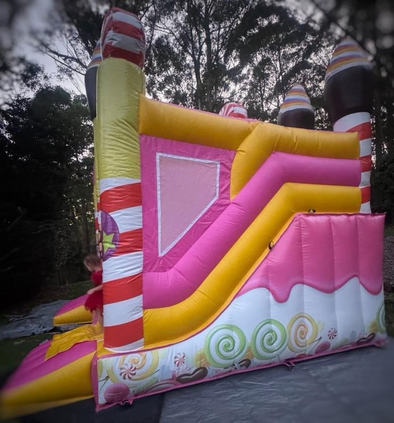 Jumping Castle - Candy with sweets and cookies Large 5.4x5.4 commercial grade jumping castle combo with slide Note: All jumping castles are new and been inflated only once for photos and check out purpose 423-4