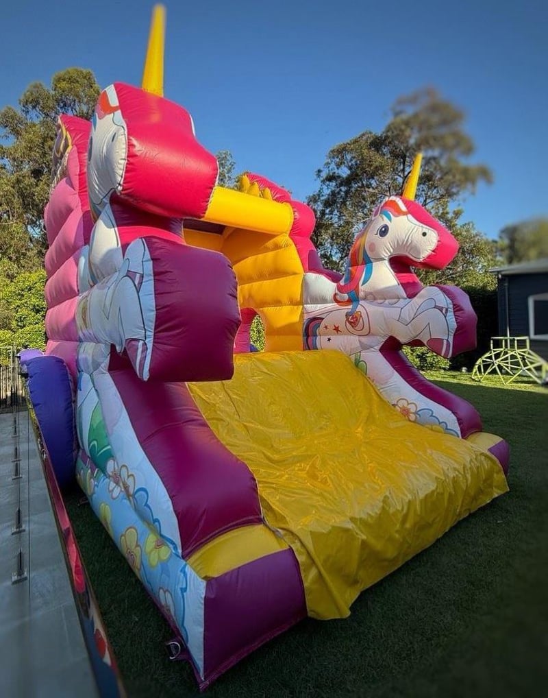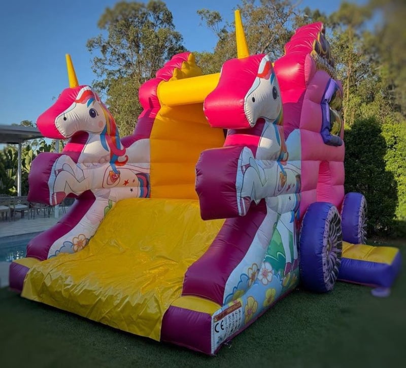 Jumping Castle - Carriage with horses Medium size 5x4.5 commercial grade jumping castle combo with slide Note: All jumping castles are new and been inflated only once for photos and check out purpose 423-5