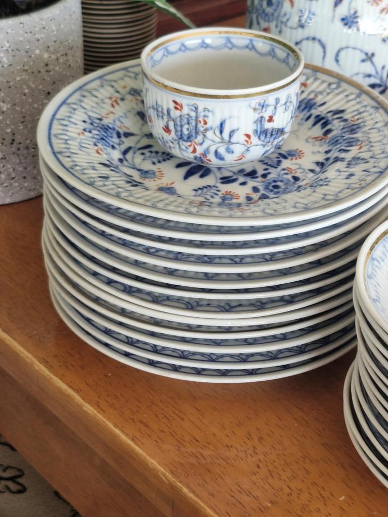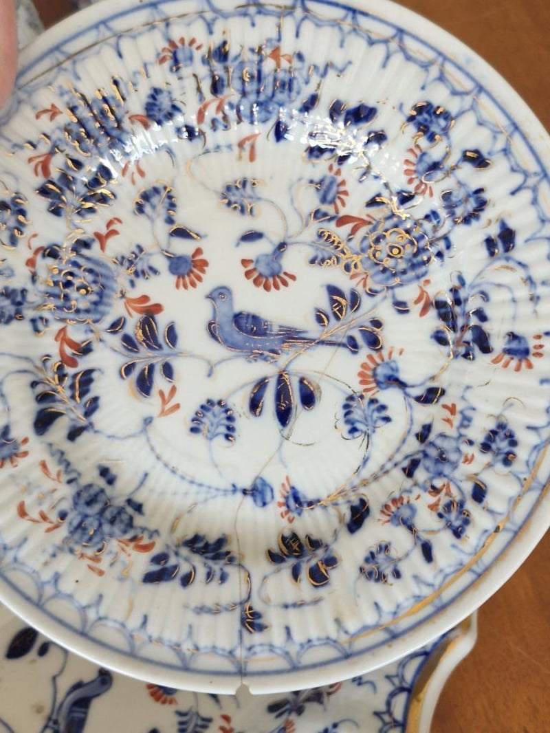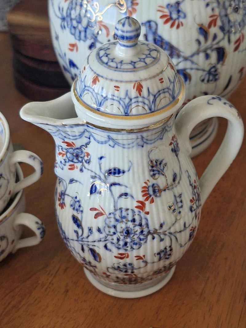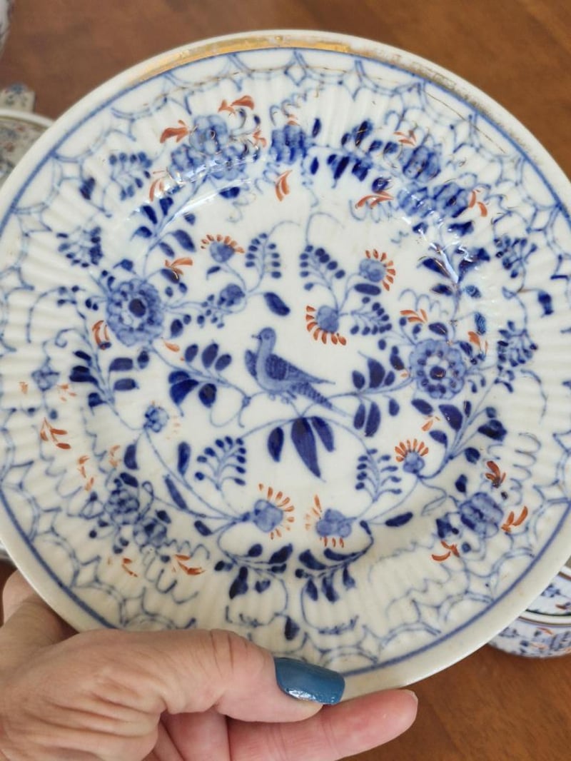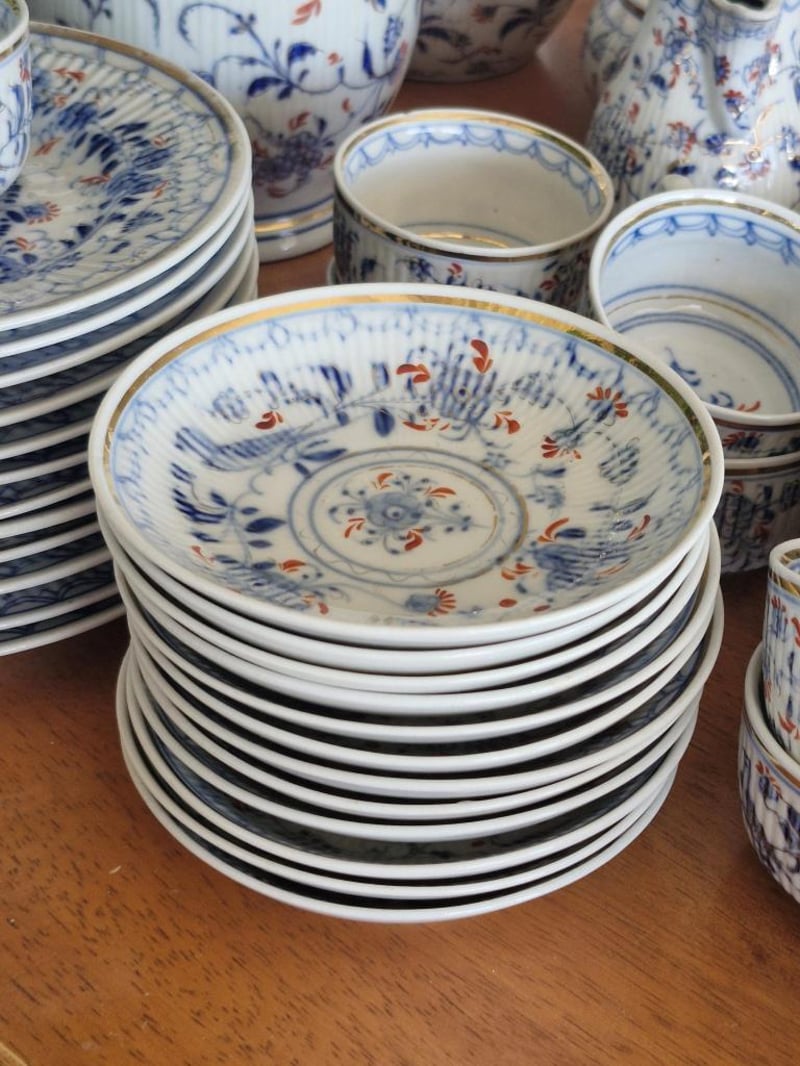 ANTIQUE CHINESE BLUE AND WHITE PORCELAIN DINNER SERVICE WITH FLORAL DECORATION Extensive Chinese Porcelain Dinner Service Comprising Teapot, Coffee Pot, Large Serving Platter With Foliate Rim, Soup Tureen, Milk Jug, Sugar Bowl, And Numerous Cups, Saucers, And Plates. Decorated Throughout In Underglaze Blue With Famille Rose Accents Featuring Flowering Plants, Scrolling Foliage, And Ornamental Motifs. Service Includes Stacked Dinner Plates (Approximately 10+), Tea Bowls With Saucers, Small Bowls, And Serving Vessels. Pieces Bear Underglaze Blue Character Marks To Underside. Condition: Fair - Refer To Images 587930+3