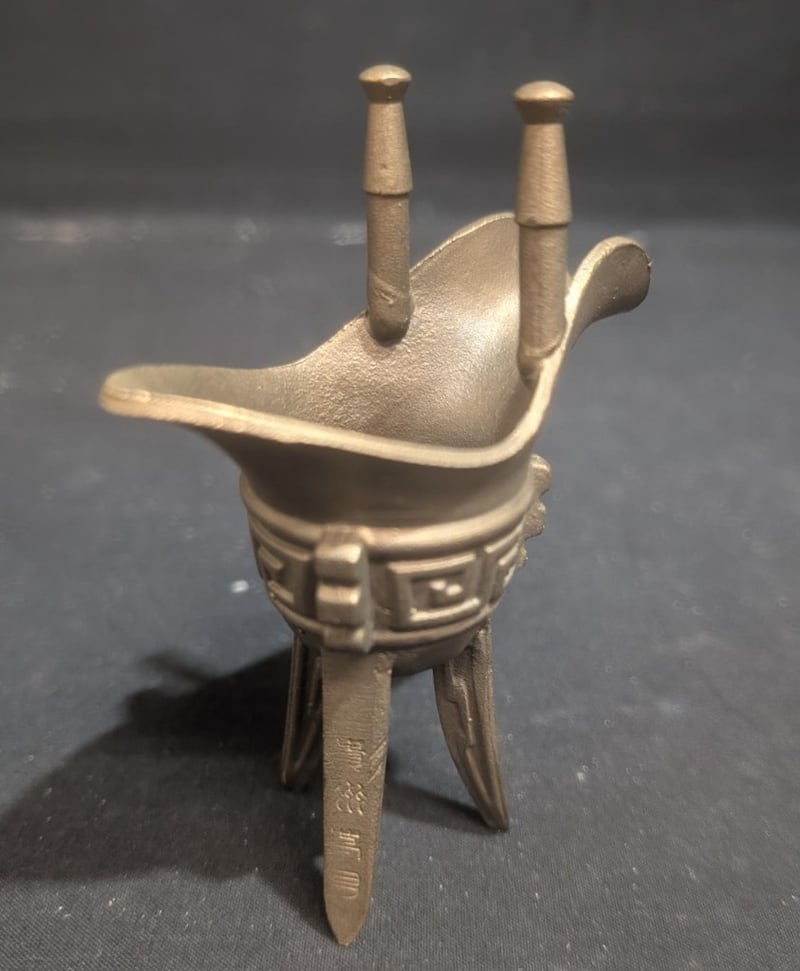 CHINESE BRONZE JUE An Ancient Ritual Tripod Vessel Used To Serve Warm Wine During Ancestor-Worship Ceremonies. Condition: Good - Refer To Images SR 233634+1