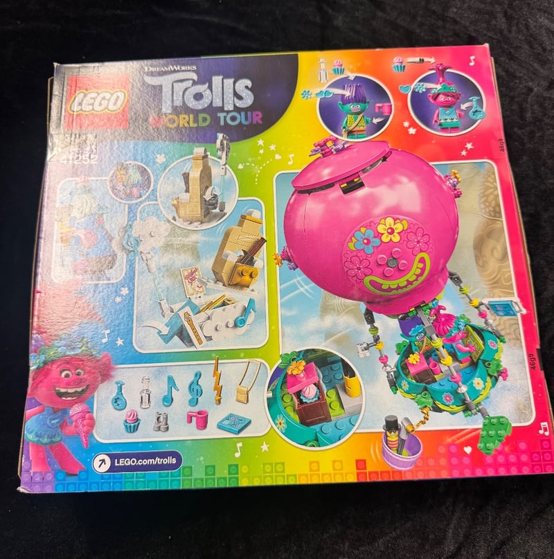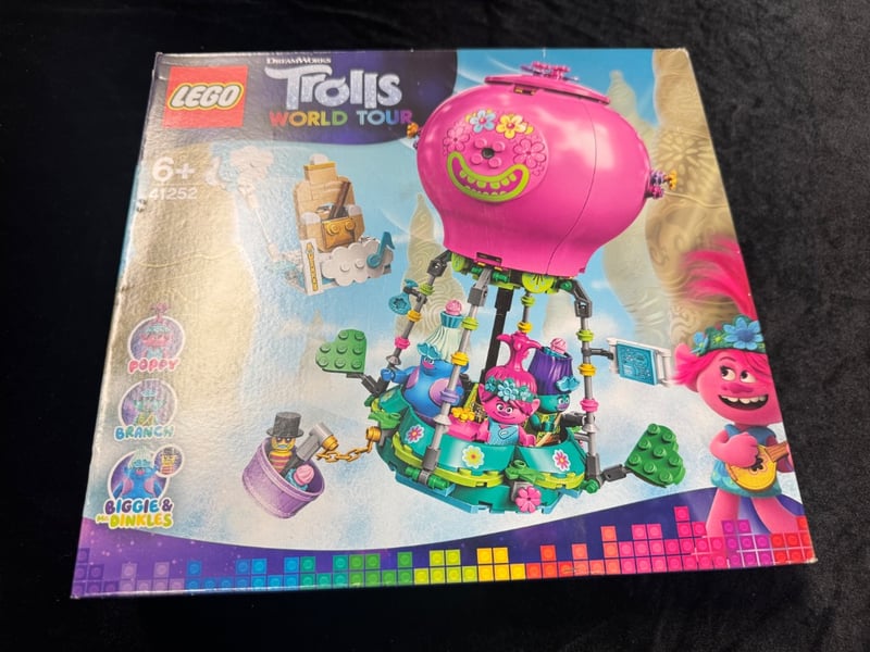 LEGO TROLLS WORLD TOUR POPPY'S HOT AIR BALLOON ADVENTURE SET 41252Dreamworks Lego Trolls World Tour Construction Set Featuring Poppy'S Iconic Pink Hot Air Balloon With Smiling Flower Face Design, Complete With Colorful Buildable Landscape Base, Multiple Minifigures Including Poppy, Branch, And Biggie, Musical Note Accessories, And Decorative Floral Elements. Set 41252Condition: Good - Refer To Images584532+174