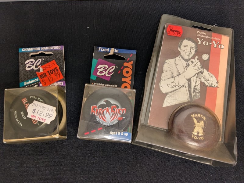 Comprehensive Collection Of Vintage Yo-Yos Featuring Multiple Iconic Brands And Models Including Champion Hardwood, Mr Toys, Strickbird, And World Championship Editions.