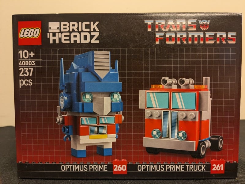 Lego Brickheadz Transformers Set 40803 Featuring Optimus Prime (260) And Optimus Prime Truck (261) Buildable Figures. Contains 237 Pieces. Age 10+. Includes Iconic Blue And Red Colour Scheme With Detailed Facial Features, Articulated Components, And Authentic Transformers Character Representation In Brick Form.