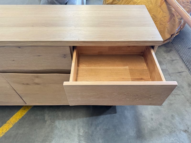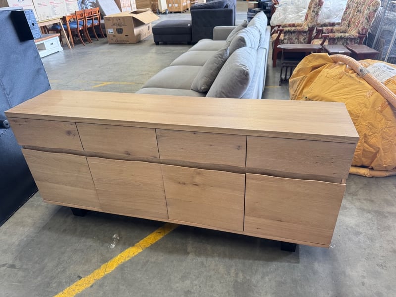 Wooden cabinet with drawers and cupboards Dimensions: 180cm x 38cm x 81cm Note: cupboards broken