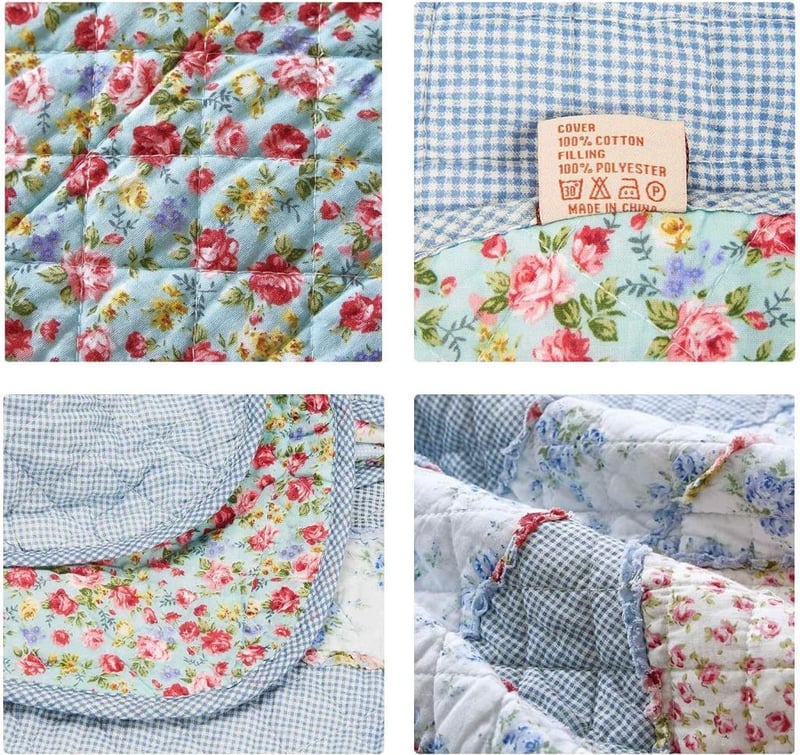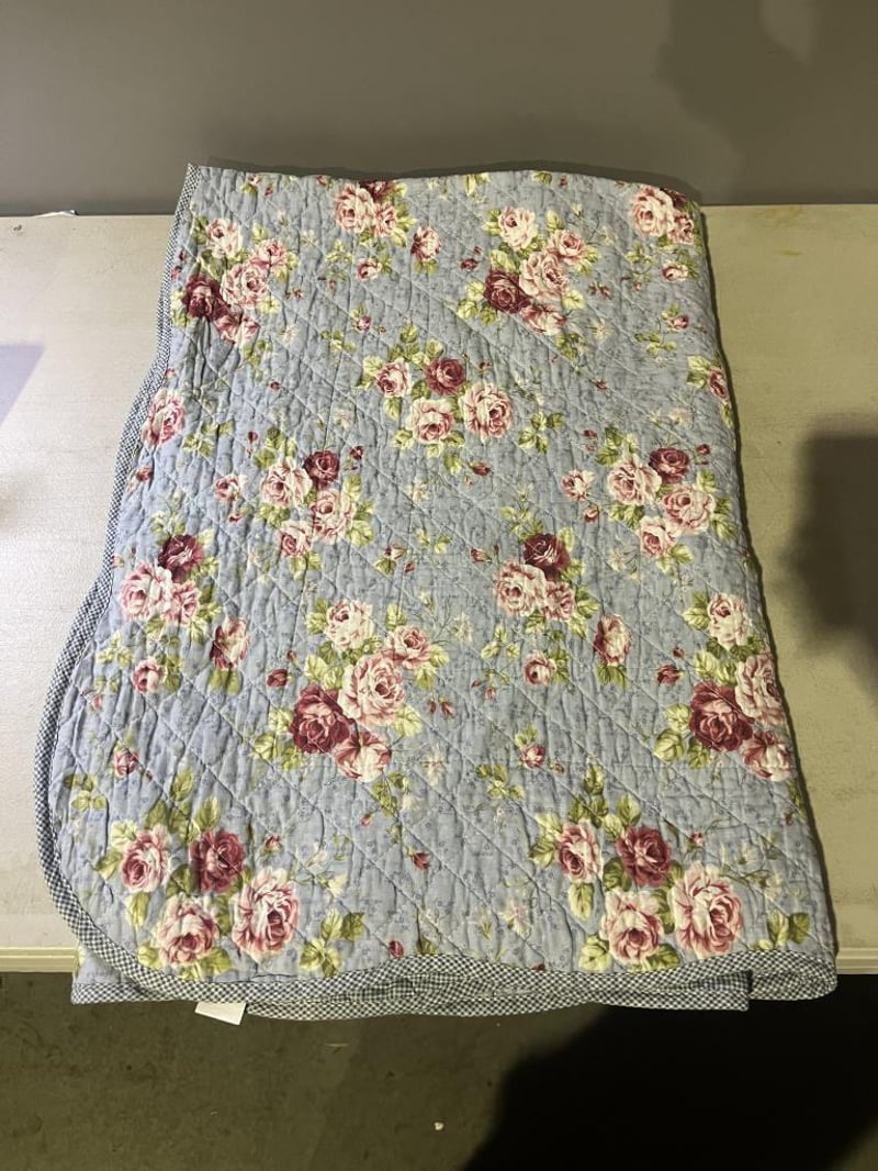 Twin Size Patchwork Quilt Blue Cotton Quilted Throw Blanket Reversible Bedspread Coverlet - REFURBISHED EXCELLENT/ VERY GOOD CONDITION.