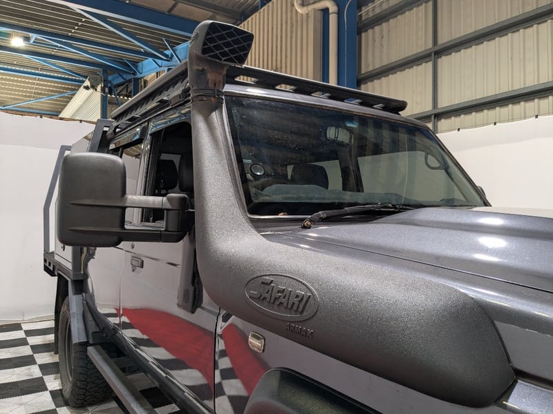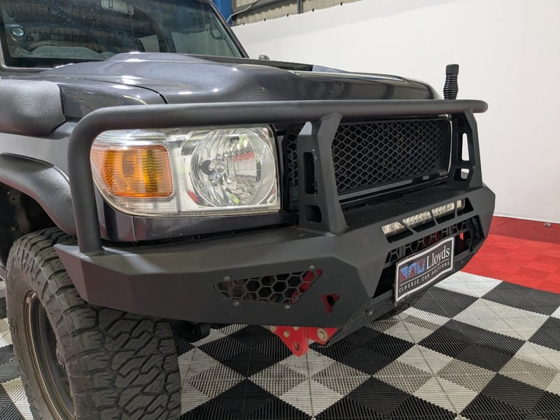 Light bar, Canopy, Dual batteries, roof racks, snorkel, UHF, All terrain tyres, manual pull handbrake, above head storage, idle up controls, cupholders, sidesteps, Rust, mark's & scratches.